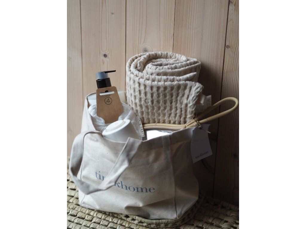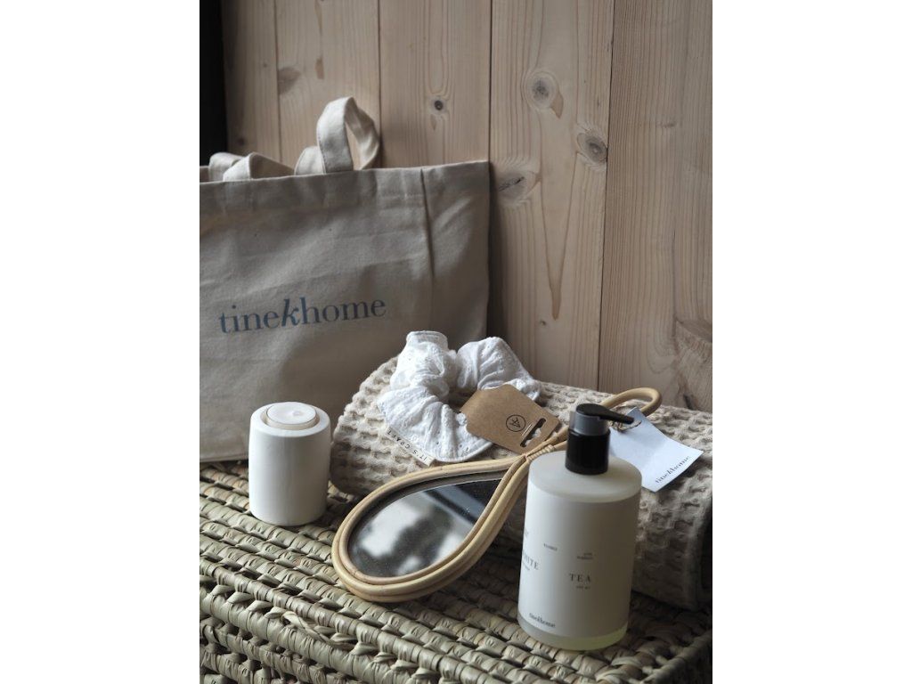 Pečlivě sestavný set spojuje každodenní péči s malým rituálem klidu. Hebká osuška, jemné mýdlo, minimalistický svícen, plátěná taška a zrcátko pro drobné okamžiky zastavení. Vše laděné do světlých, přirozených tónů, které vnesou do tvého dne lehkost a harmonii.