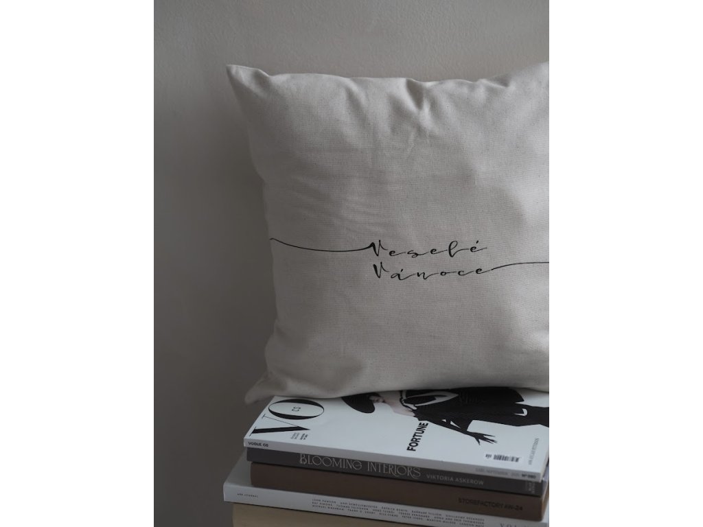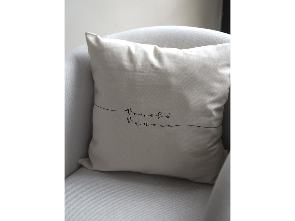 Béžový povlak na polštář Veselé Vánoce - krásný povlak ze 100% bavlněného plátna v přírodním odstínu s černým nápisem Veselé Vánoce. Jednoduchý a čistý design, který se hodí do každého útulného domova.