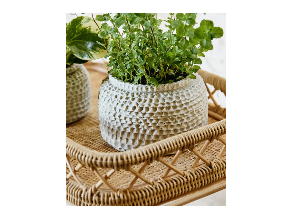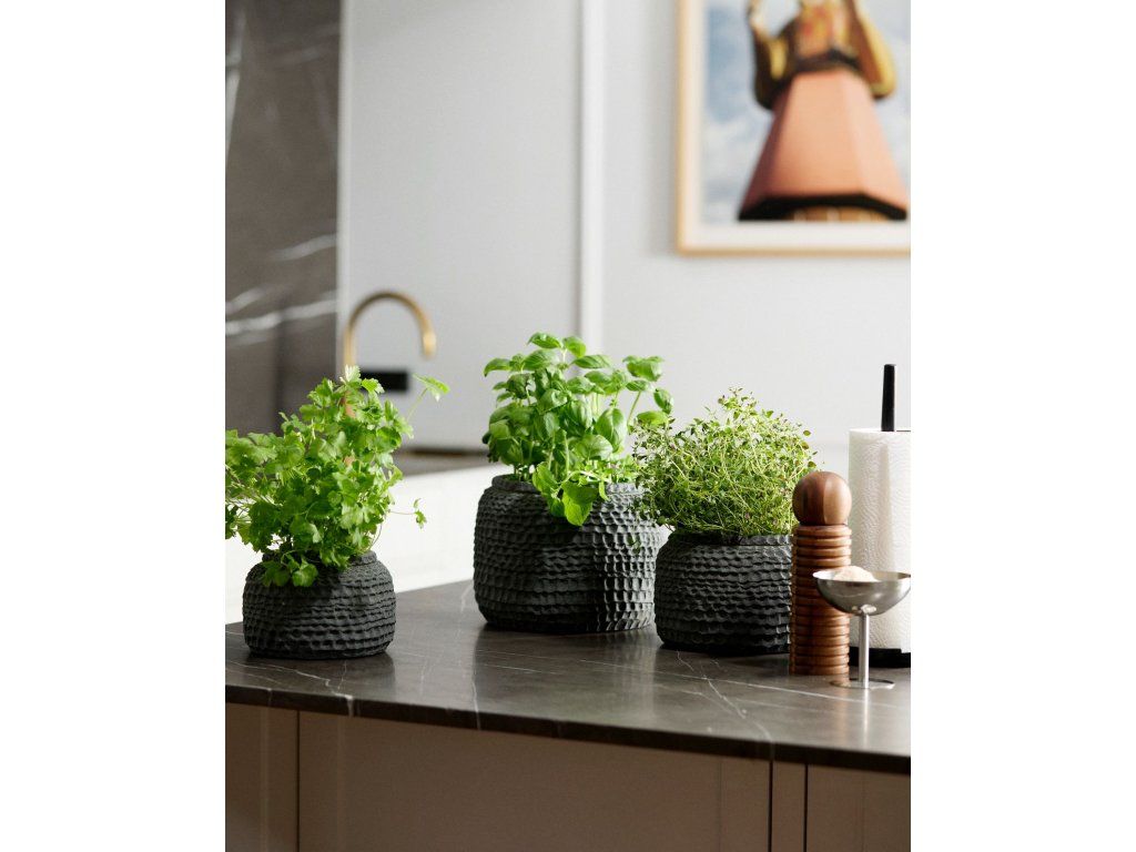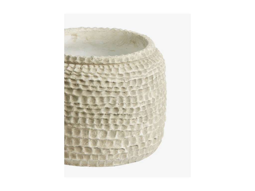 Květináč AOBA je vyroben z cementu, což mu dodává teplý, dekorativní vzhled, který rozjasní každou místnost. Květináč má propracovaný, detailní povrch, který působí odvážně jako sochařský, samostatný objekt.