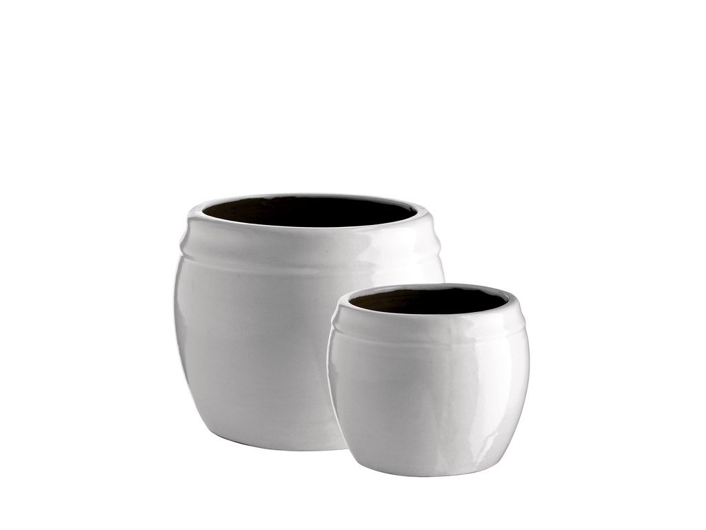 Sada 2 glazovaných keramických květináčů pro malé stromy a zářivě zelené rostliny.
