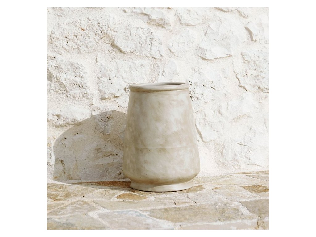 Květináče z naší série Coco jsou ručně vyrobeny z terakoty a zdobeny unikátní technikou, která v pískové barvě vytváří krásný, třpytivý efekt. Design je inspirován estetikou středomořské oblasti a mísí eleganci s přírodními detaily. Jemný, texturovaný povrch činí květináče ideálními jak pro jasné tóny léta, tak pro hlubší odstíny podzimu.