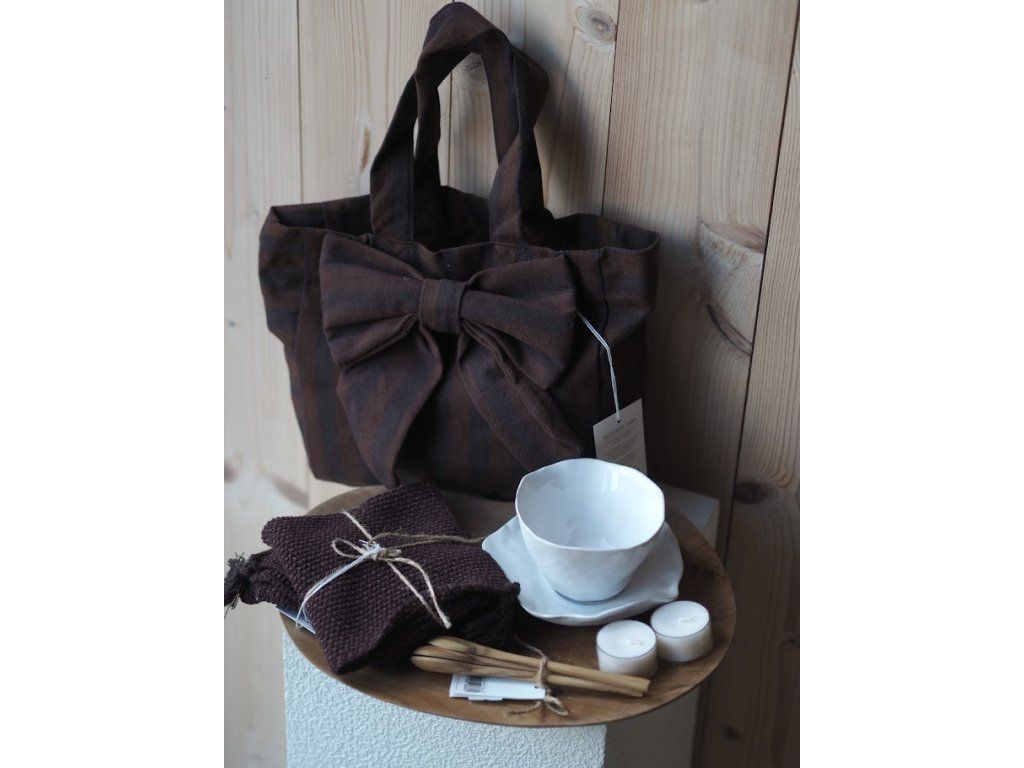 - plátěnou tašku s mašlí Tine K Home - hnědý proužek