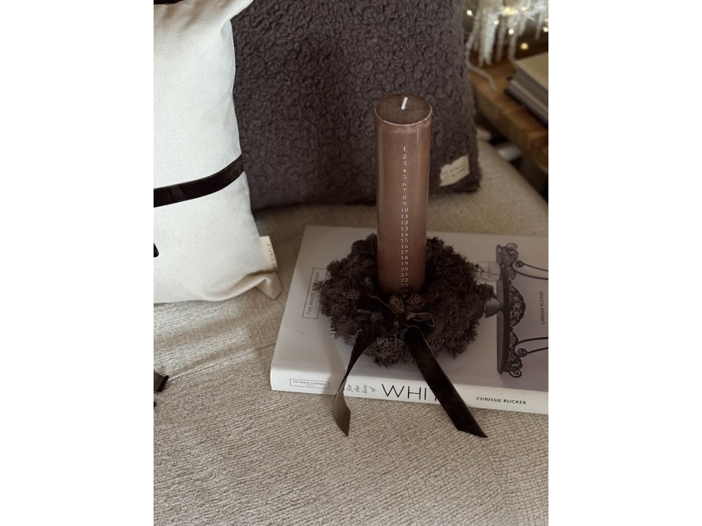 Malý věneček z lišejníku - jednoduchý malý věneček ze stabilizovaného lišejníku, který můžete použít na válcovou svíčku či ho zavěsit na stěnu nebo dveře.
