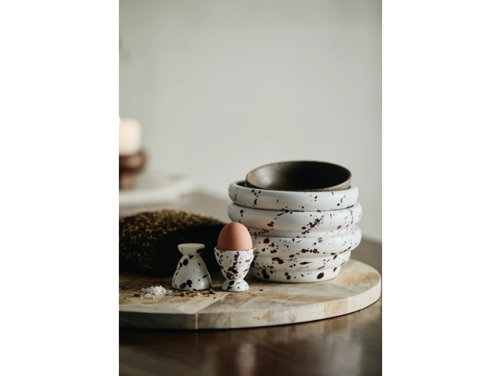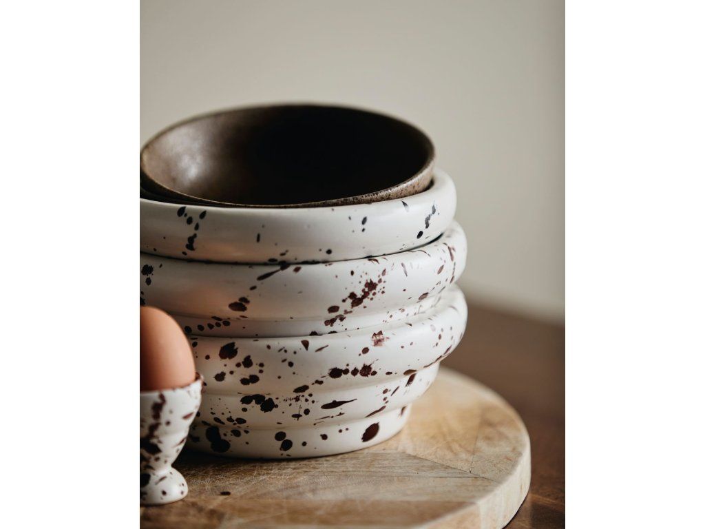 Prozkoumejte kolekci RIA, kde každý kus nese jedinečný, ručně vyrobený nádech. Mísa je zdobena charakteristickým tmavě hnědým vzorem cákance, který dodává vašemu stolu hravý, ale zároveň sofistikovaný rozměr.