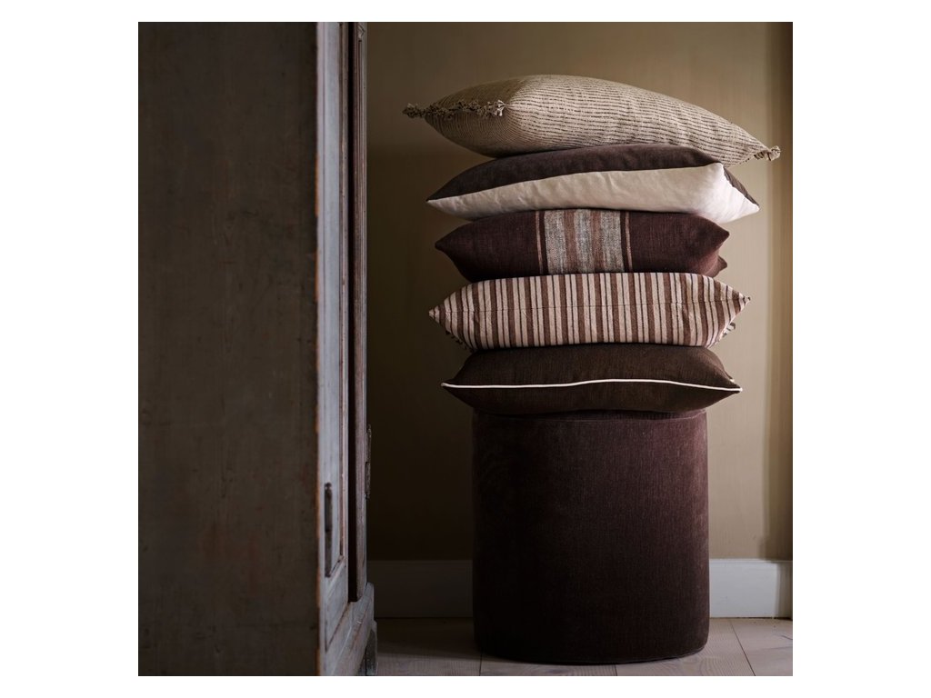 Naše povlaky na polštáře Coto jsou vyrobeny z bavlny s pruhy v ecru a mocca barvách. Hrubá vazba vytváří živou povrchovou texturu, zatímco třásně podél okraje vytvářejí krásný kontrast s ostatními textiliemi v kolekci.