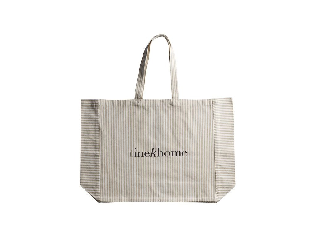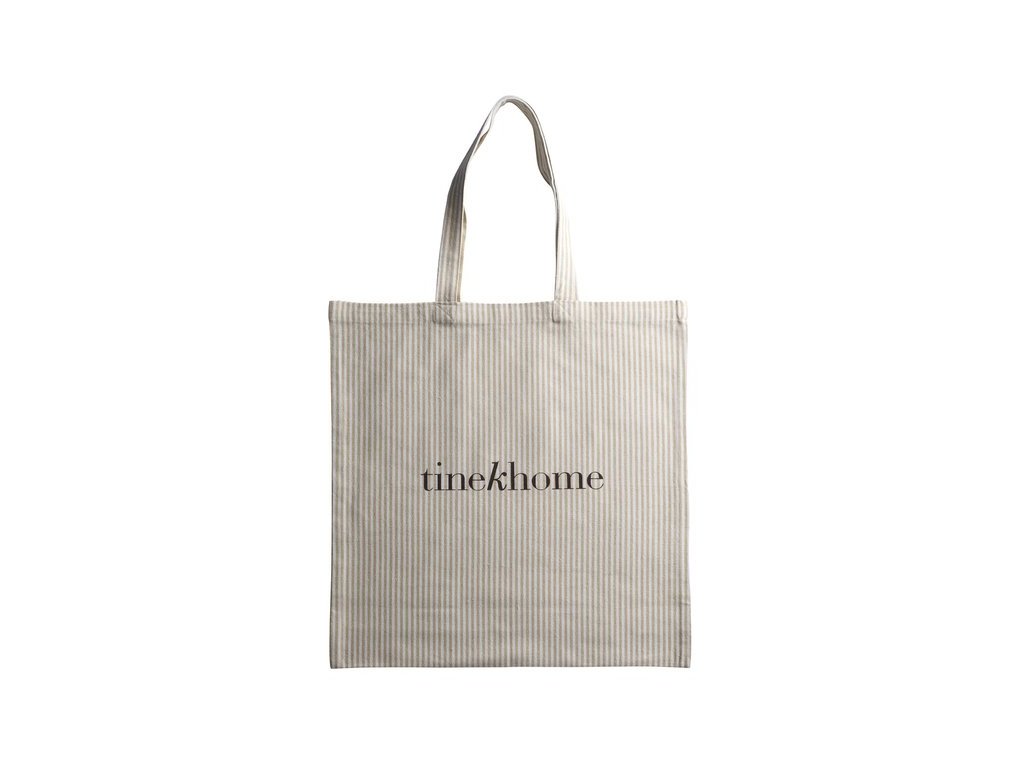 Tašky s logem Tine K Home jsou praktické pro každodenní aktivity. Tyto tašky mají pevná ucha a jsou k dispozici v různých velikostech, takže jsou ideální pro nákupy potravin, pochůzky, praní prádla, návštěvy posilovny a další. Jsou navrženy s jemným proužkem v jasných tónech a vyrobeny z odolné směsi recyklované bavlny a polyesteru, takže kombinují styl a funkčnost.