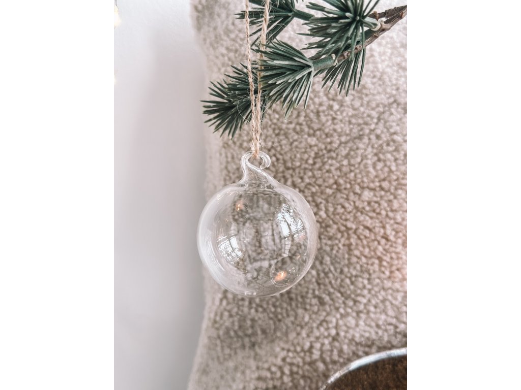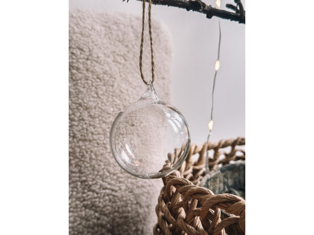 Skleněná ozdoba ISA - ručně foukaná jednoduchá skleněná ozdoba připomínající bublinu, která dodá stromku či větvím eleganci, čistotu a jemnost. Ozdoba je zavěšena na přírodním režném provázku.
