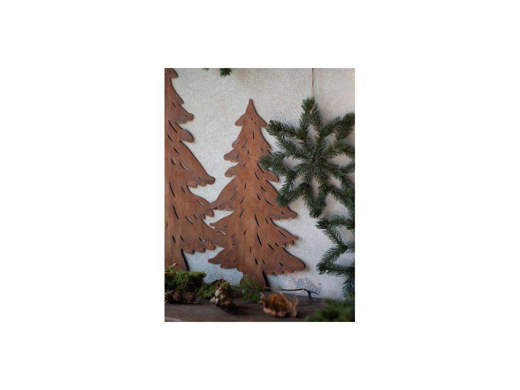 Strom plochý REZ - Dekorativní velký kovový zápich v podobě stylizovaného stromu vnese do Vaší zimní výzdoby či zahrady přírodní kouzlo a rustikální nádech. Rezavý povrch působí autenticky a krásně ladí s přírodními materiály - dřevem, mechem i jehličím. Vhodný k venkovnímu použití, ideální do květináče, truhlíku či vánočnímu aranžmá.