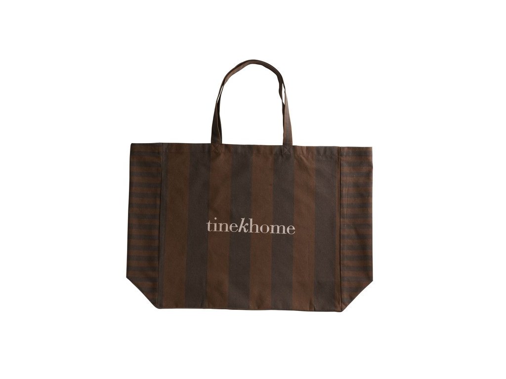 Tašky s logem Tine K Home jsou praktické pro každodenní aktivity. Tyto tašky mají pevná ucha a jsou k dispozici v různých velikostech, takže jsou ideální na nákupy potravin, pochůzky, praní prádla, návštěvy posilovny a další. Jsou navrženy s jemným proužkem v hnědých tónech a vyrobeny z odolné směsi recyklované bavlny a polyesteru, takže kombinují styl a funkčnost.