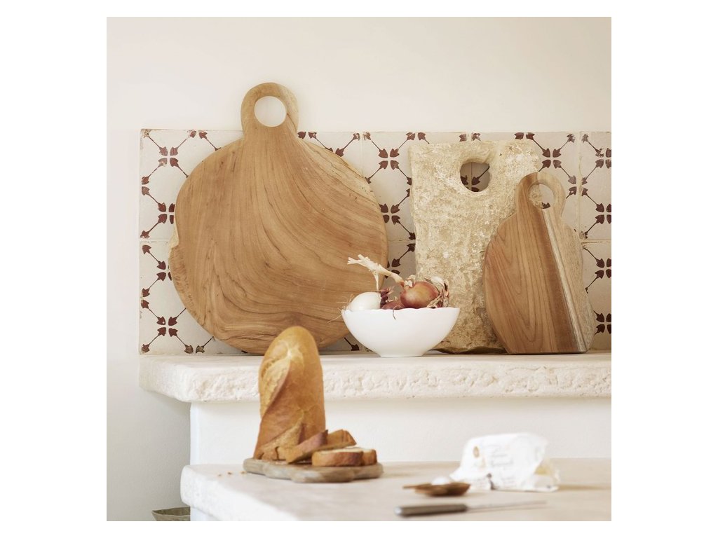 Toto kulaté prkénko na krájení má rozměry Ø 40 x V 2 cm a je perfektním doplňkem vaší kuchyňské kolekce, kde rustikální vzhled kontrastuje s tradiční keramikou. Prkénko je bezpečné pro použití s potravinami. Krásně se hodí jako servírovací prkénko nebo jako dekorativní prkénko na krájení.