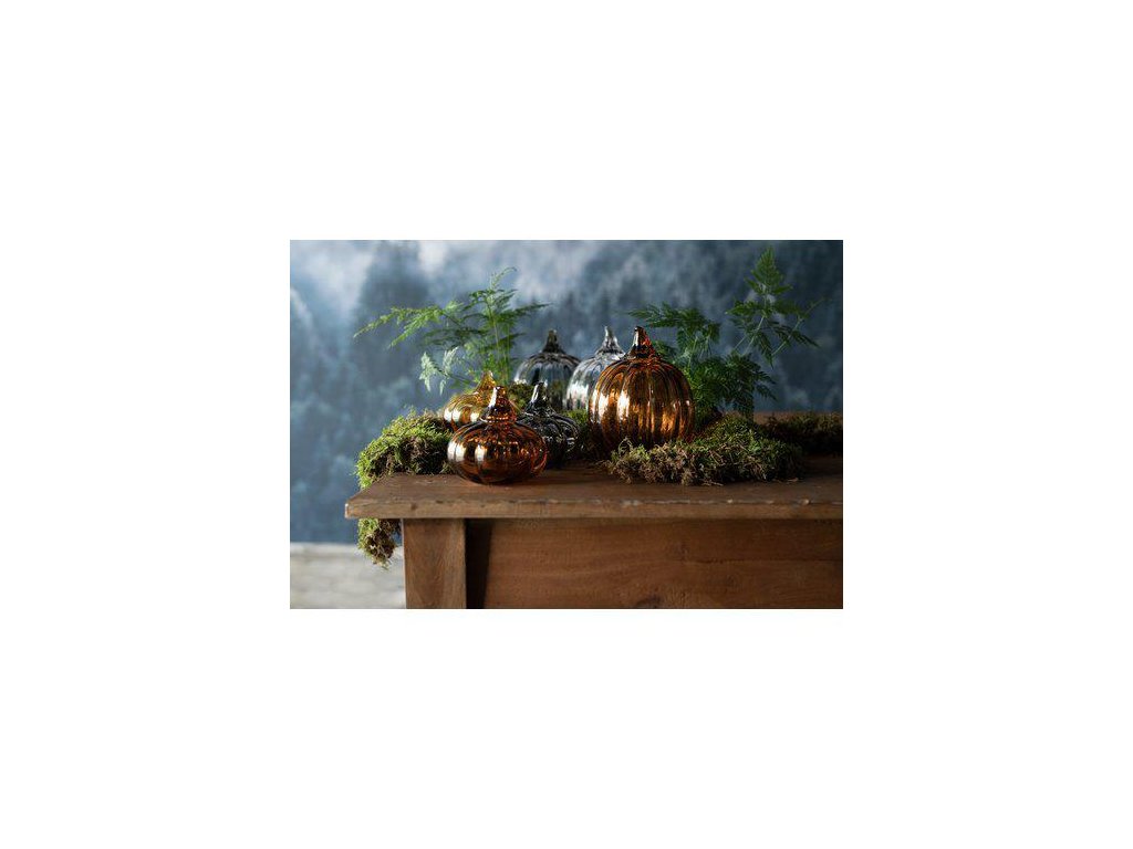 Dýně, která nikdy nezvadne. Tato dekorativní skleněná dýně v sobě spojuje jemnost skla s kouzlem podzimu. Perfektní jako stylový doplněk na stůl, komodu nebo parapet. Její třpytivý povrch chytá světlo a dodává prostoru hřejivý nádech.